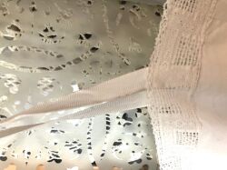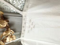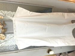 比較的薄手のコットンキャミソールです。胸元に繊細なカットワークレースが施され、レースのトリミングも涼やかな印象です。状態も良く、重ね着されると素敵です。細やかなハンドメイドが魅力のキャミソールです。サイズ 着丈79,5cm 身幅48,5cm 裾幅89cm ストラップ長さ16cm普通郵便320円で発送いたします。
